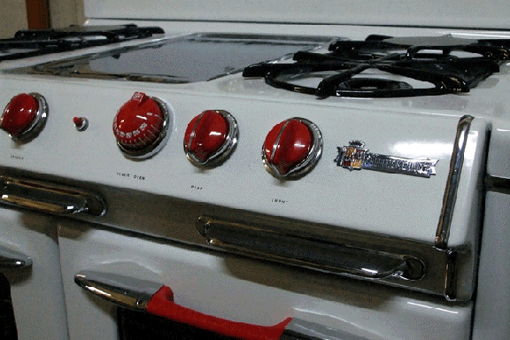 griddle 2 ovens, 2 broilers, clock/timer with auto bake for right